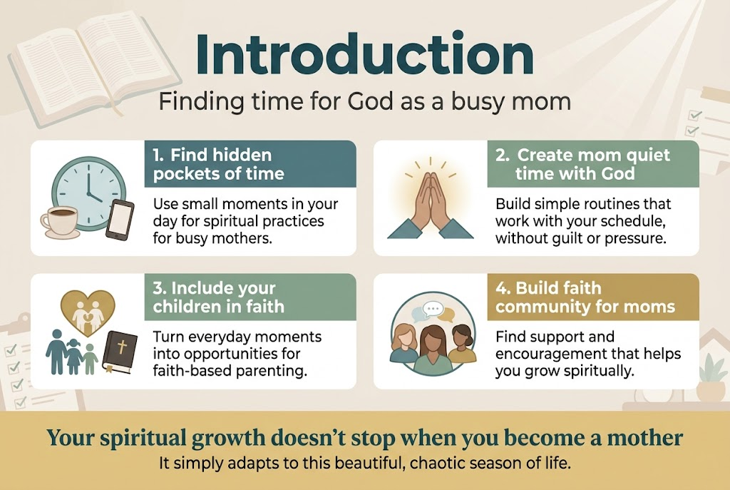 We'll explore how to discover hidden pockets of time throughout your day for spiritual practices for busy mothers, including simple ways to create mom quiet time with God that actually works with your schedule. You'll also learn practical strategies for involving your children in your spiritual journey, turning everyday moments into opportunities for faith-based parenting. Finally, we'll discuss how building faith community for moms can provide the support and encouragement you need to grow spiritually while balancing faith and motherhood.